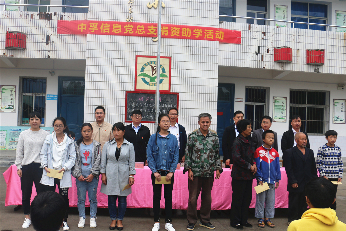 2018年9月26日,6686体育官网首页党员代表一行5人前往河南洛阳偃师市府店镇开展捐资助学暨爱国主义教育活动。洛阳市委保密局局长薛少宾、偃师市刘红波等领导陪同参加。