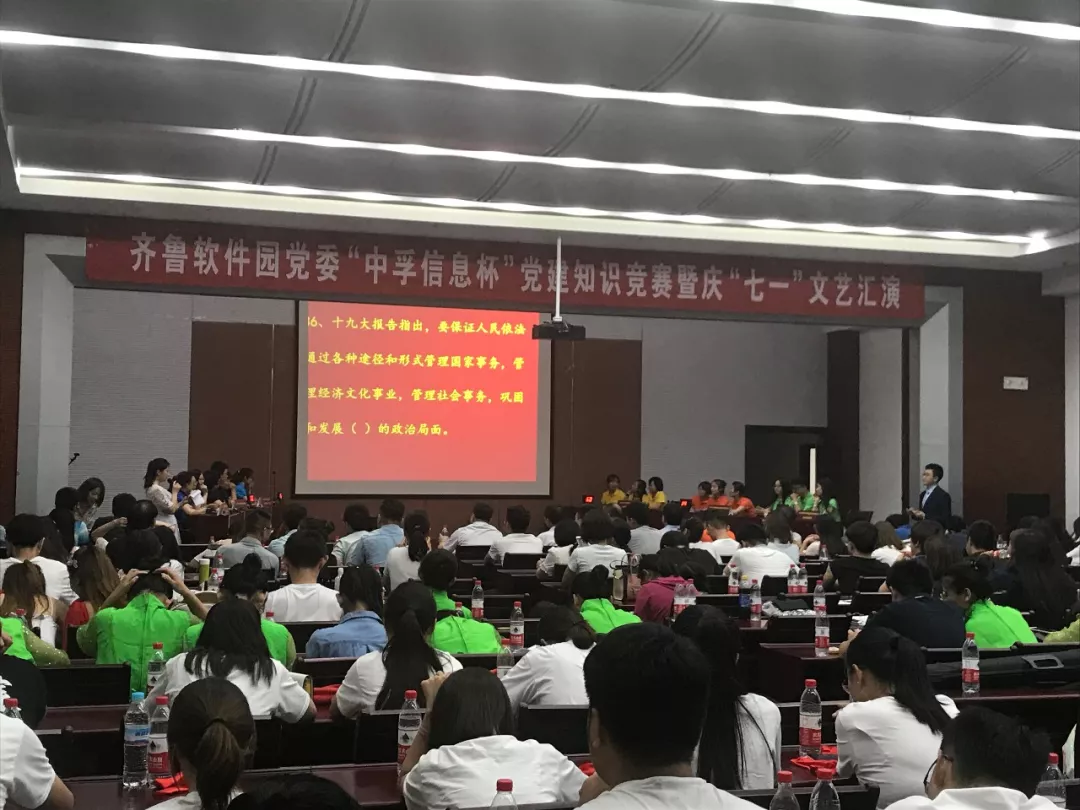 为庆祝中国共产党成立97周年,深入推进党的十九大精神学习,2018年6月30日下午,6686体育官网首页党总支响应齐鲁软件园党委号召,组织并参与了“6686体育官网首页杯”党建知识竞赛暨庆“七一”文艺汇演活动,为党的97岁华诞献礼。园区企业联合党委下属企业党组织成员、党建指导员等200余人参加了此次活动。