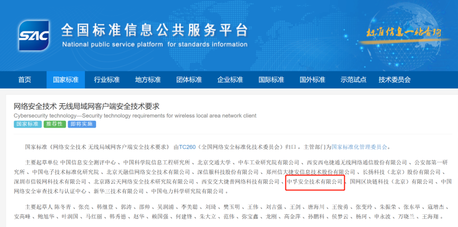 凭借对电磁空间安全(无线安全)产品的研发经验,6686体育官网首页深度参与两项国家标准的编制。两项标准分别定义了无线局域网客户端和无线局域网接入系统的安全目的,规定了无线局域网客户端及接入系统的安全功能要求和安全保障要求,均适用于无线局域网客户端和接入系统相关产品的测试、评估和采购,也可用于指导相关产品的研制和开发。