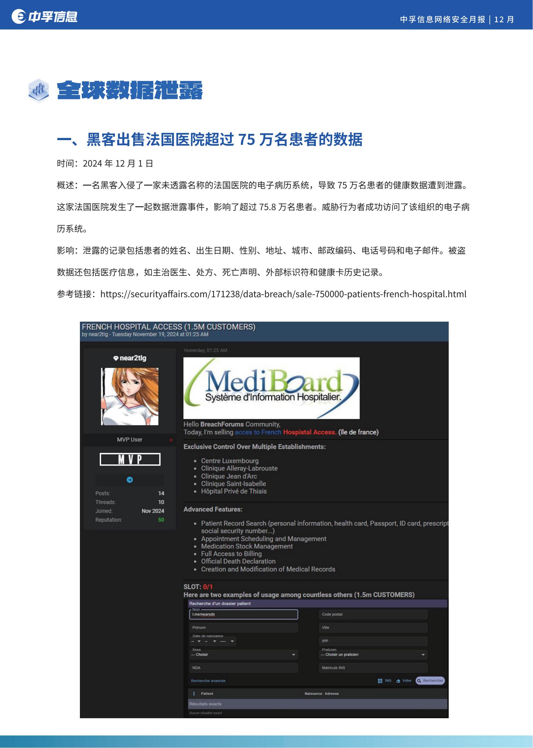 此外,互联网行业数据泄露严重,其中个人隐私仍是热点,其中有:德克萨斯理工大学数据泄露事件影响140万人; 8Base勒索软件组织攻击克罗地亚里耶卡港; 黑客出售法国医院超过75万名患者的数据; 美国比特币ATM运营商Byte Federal遭遇数据泄露等。